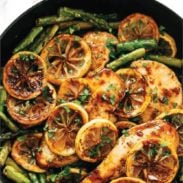 Very easy and flavorful. I would recommend frying the lemons after removing the chicken and then deglaze the pan with a little water to steam the asparagus in the delicious au jus. I then removed the asparagus and sautéed several handfuls of spinach/super greens in the remaining sauce. Plated the chicken, lemons and asparagus on top of the sautéed greens. Delicious and beautiful.