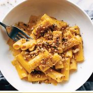 Pumpkin Rigatoni with Rosemary Walnut Crispies